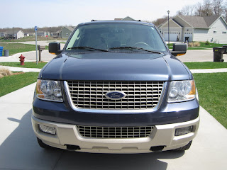 Well, it's new to us anyway. Our 2006 Ford Expedition Eddie Bauer Edition found it's way to our garage last night! This was Cory's boss' company car and she gave us a great deal on it! Cory picked up her new Expedition from the dealership today which allowed us to now have her old Expedition. So far we are loving it!! Everyone has commented on how HUGE it is (and some find it funny that I'm the one driving such a big car the majority of the time), but it handles like a dream! Joshua enjoyed playing in it last night and found a few "treasures" that were left behind (a couple crayons, a highlighter and 12 cents) hidden under the seats. After a couple hours of cleaning everything, loading it all back up with our stuff and installing car seats we now have our family car that can easily tow our new trailer. Besides the big excitement of car being "new" the boys are enjoying new seating - Joshua FINALLY gets to ride in a booster seat and we turned Matthew forward facing (shhhhh, it's really not legal until next Tuesday when he will meet the 1 year old criteria)!